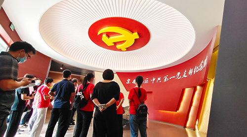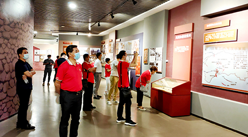 首先,大家在紀念館前進行了合影,寶藍黨員一同重溫入黨誓詞,大家深深感受到黨員的責任、使命和榮耀。